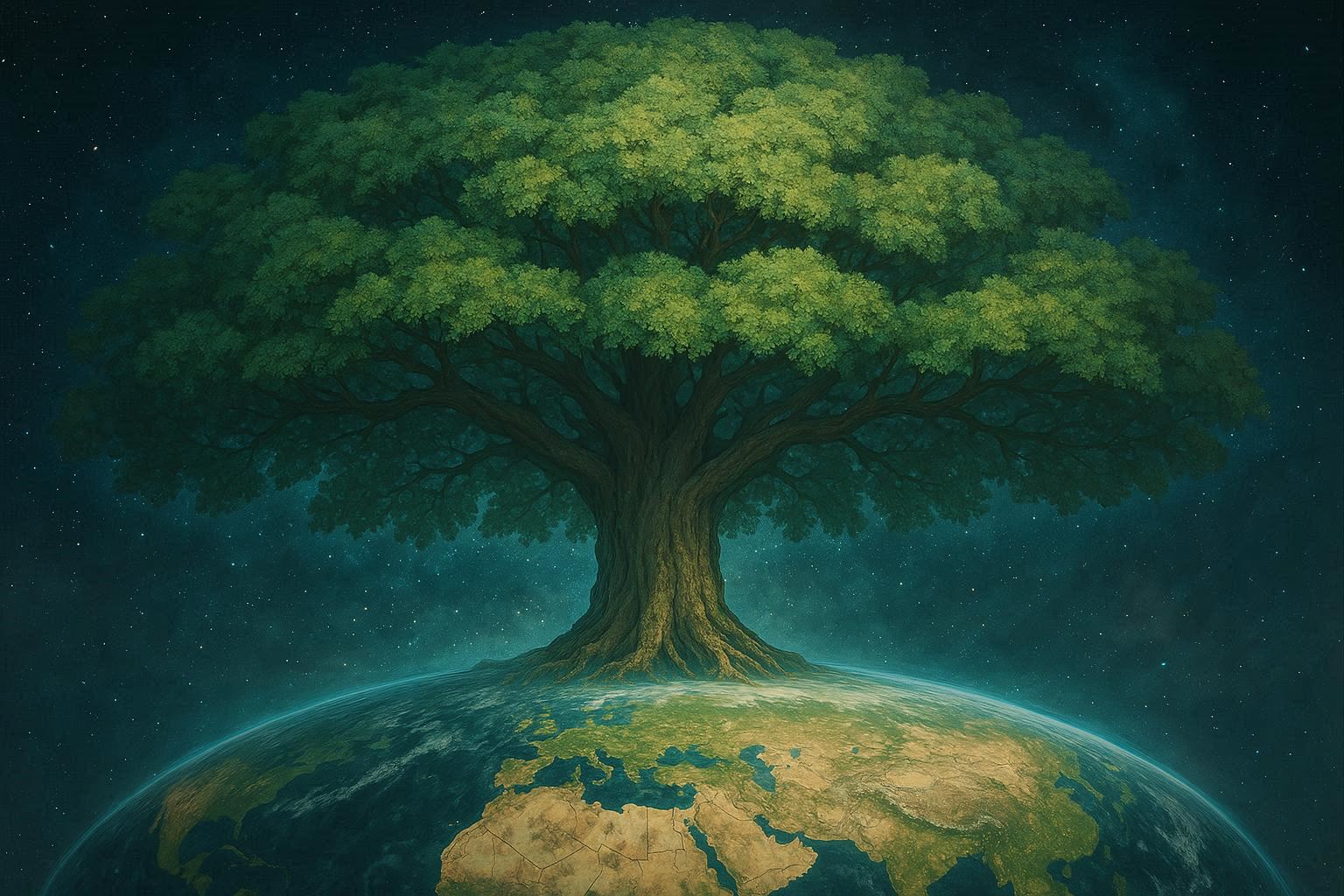 Sebuah pohon yang amat sangat besar dengan daunan berguguran