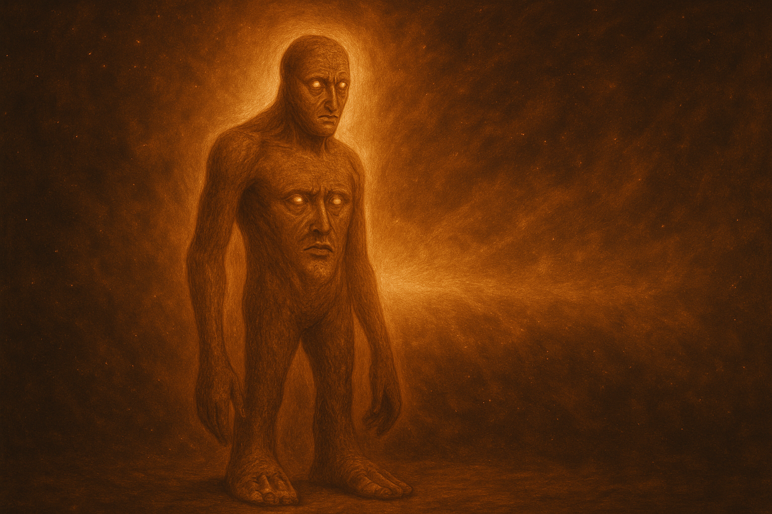 Sesosok makhluk jangkung dengan wajah di beberapa bagian tubuhnya