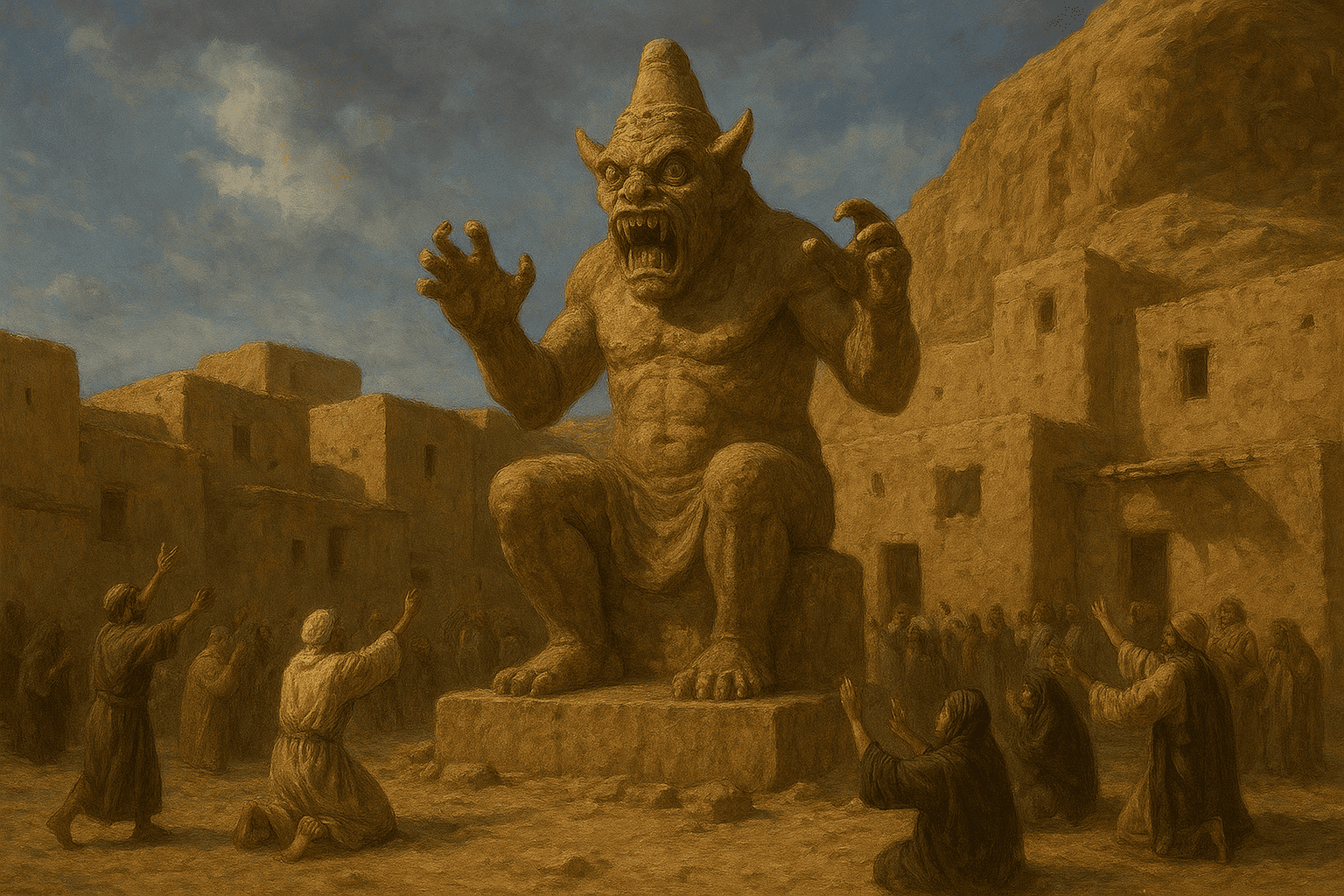 Berhala di tengah perkampungan Arab kuno. (image by chatgpt)