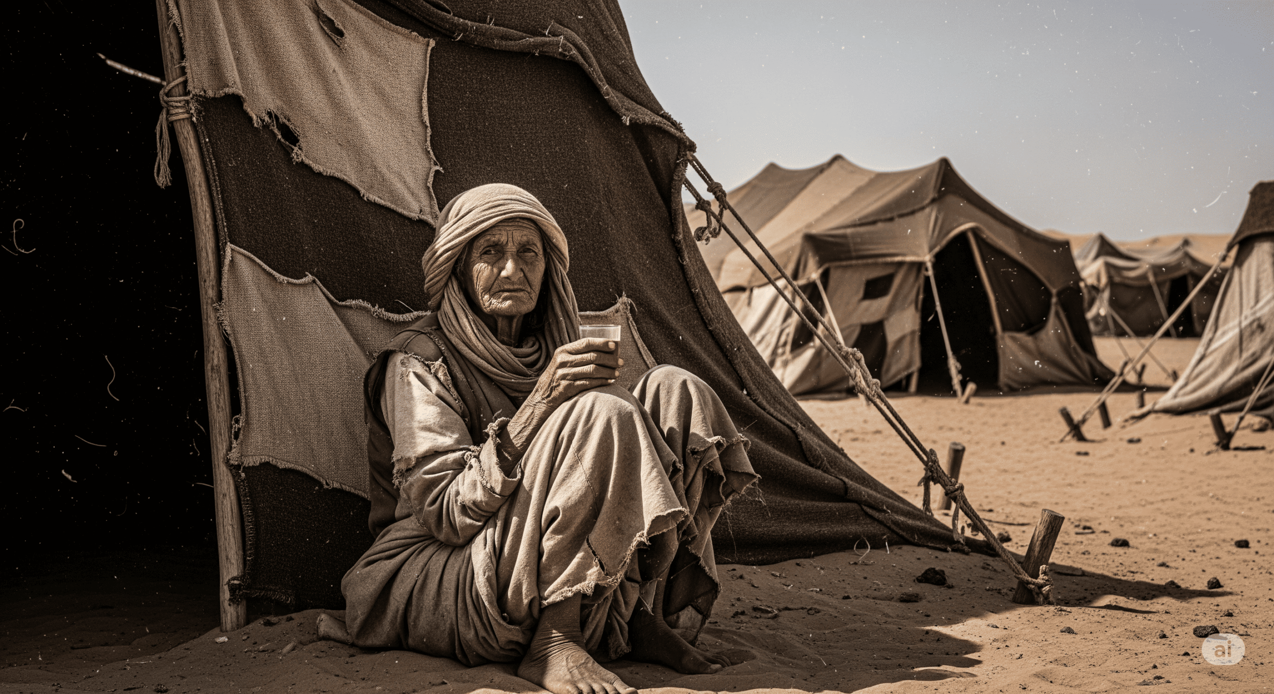 Seorang wanita tua yang sedang minum. (image by gemini)